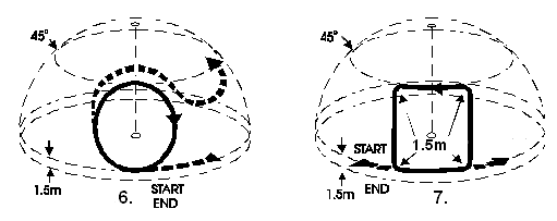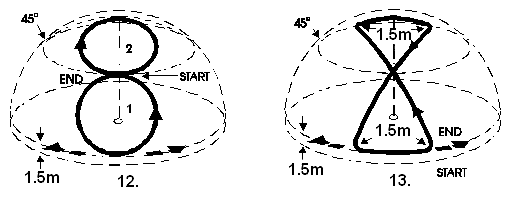 Элементы полета и фигуры разрешается демонстрировать только в порядке последовательности, указанной в программе. В промежутках между фигурами участник может выполнять лишь круги горизонтального полета (но не менее двух). О начале какого-либо элемента полета или фигуры он сигнализирует поднятием руки, которую не должен опускать в течение времени, пока модель не совершит по крайней мере один круг горизонтального полета.